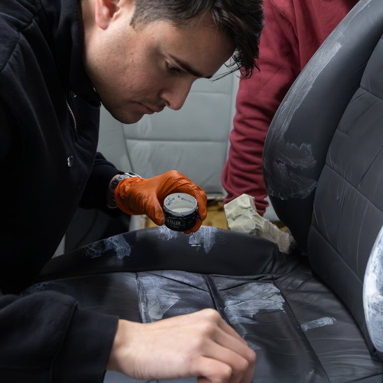 Formação prática de 2 dias em restauro profissional de interiores automóveis. Técnicas de restauro de botões e plásticos, trabalho de texturas, afinação de cores, restauro e reparação de peles.