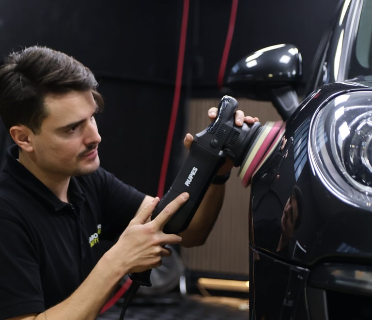 O polimento automóvel permite recuperar o brilho original da pintura, eliminando riscos ligeiros, marcas de lavagem e sinais de oxidação.